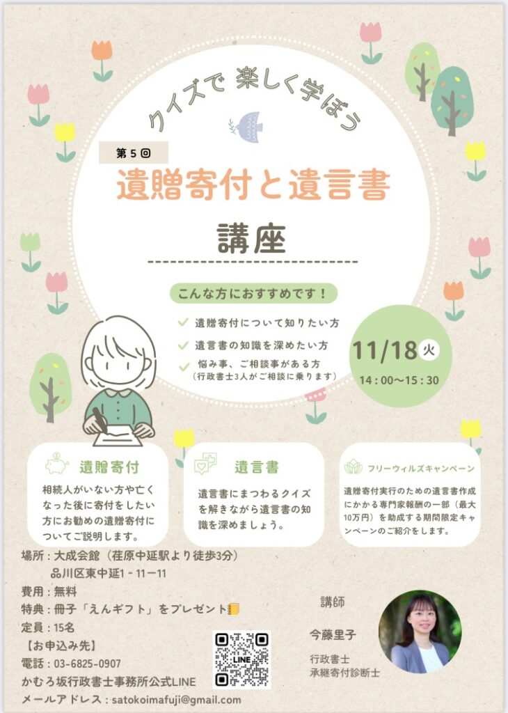 武蔵小山での遺言書、遺贈寄付のセミナーが終わりました。